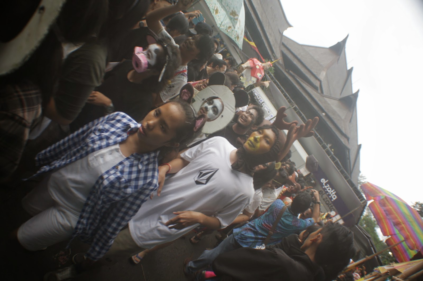 Orang-orang berlarian. Beberapa di antaranya berteriak menyuruh aparat berseragam dan bersenjata pentungan mundur. Hari beranjak siang, bertambah terik saat suasana makin panas.